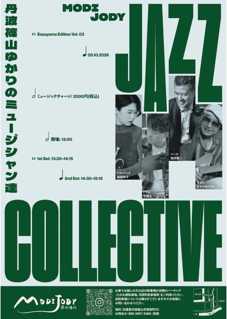 この度、丹波篠山にゆかりのある素晴らしいミュージシャンたちが集結するジャズライブイベント、「MODI JODY JAZZ COLLECTIVE – Sasayama Edition Vol. 03 -」の開催が決定いたしました!